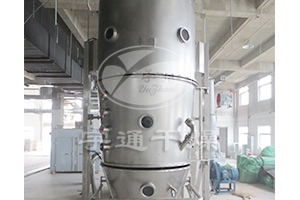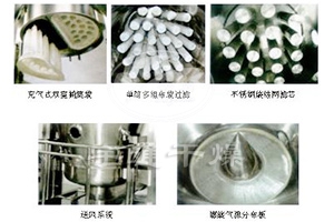 將制粒用的粉末物料放入流化床內(nèi),物料粉末粒子在原料容器中呈環(huán)形流化狀態(tài),受到經(jīng)過凈化后的加熱空氣預(yù)熱和混合,將粘合劑溶液霧化噴入,使若干粒子聚集成含有粘合劑的團(tuán)粒,由于熱空氣對物料的不斷干燥,使團(tuán)粒中水分蒸發(fā),粘合劑凝固,此過程不斷重復(fù)進(jìn)行,形成理想的、均勻的多微孔球狀顆粒。